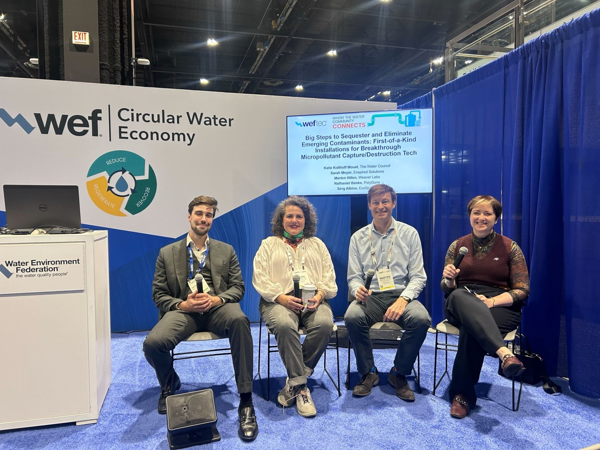 PolyGone participated in WEFTEC 2025, the world’s leading water quality event, engaging in forums that highlighted global innovation and collaboration in water sustainability. As part of the Circular Water Economy sessions, PolyGone joined the panel “Big Steps to Sequester and Eliminate Emerging Contaminants,” where co-founder Nathaniel Banks shared the company’s mission and breakthrough technologies for tackling microplastic pollution alongside partners from Enspired Solutions, Weaver Labs, The Water Council, and ecoSPEARS.